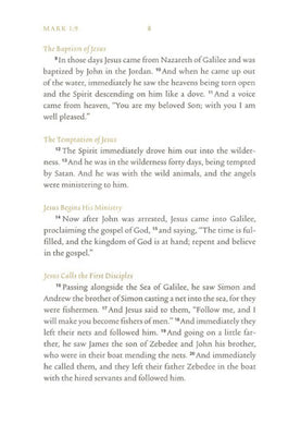 ESV Scripture Journals pair the entirety of individual books of the Bible with lightly lined blank pages opposite each page of Bible text, allowing readers to take extended notes or record insights and prayers directly beside corresponding passages of Scripture.